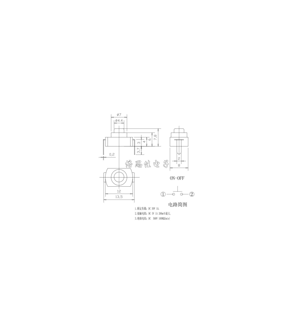 Кнопка с фиксатором в фонарь LED CREE 7мм белая. Размер указан на рисунке.